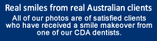At 53 I noticed my teeth and smile were deteriorating rapidly. Through recommendations and several hours searching the internet I came across the Cosmetic Dentists of Australia web site and learnt how this group of dentists have all been trained at one of Americas Premier Dental Training Institutes, the Las Vegas Institute of advanced dental studies. I chose one of these CDA dentists to give me a New Smile makeover, and since then I have never smiled with so much confidence. My new smile changed my life…. I did it….. Why don’t you.?.